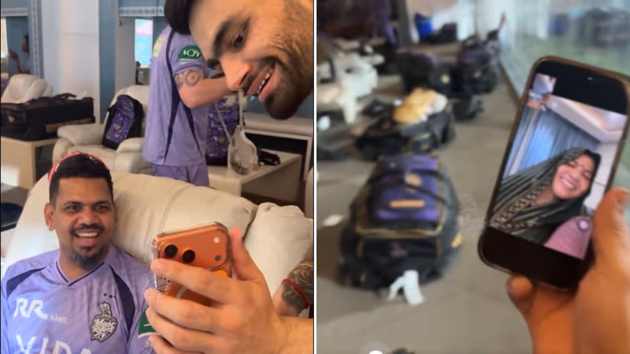 ഒരു ടവല് ചുറ്റി അമ്മയോടും സഹോദരിയോടും സംസാരിച്ച് ഡ്രസ്സിംഗ് റൂമിലൂടെ നടന്നുവന്ന റിങ്കു സീറ്റില് വിശ്രമിക്കുകായിരുന്ന സുനിൽ നരെയ്നെ വീട്ടുകാർക്ക് പരിചയപ്പെടുത്തി.