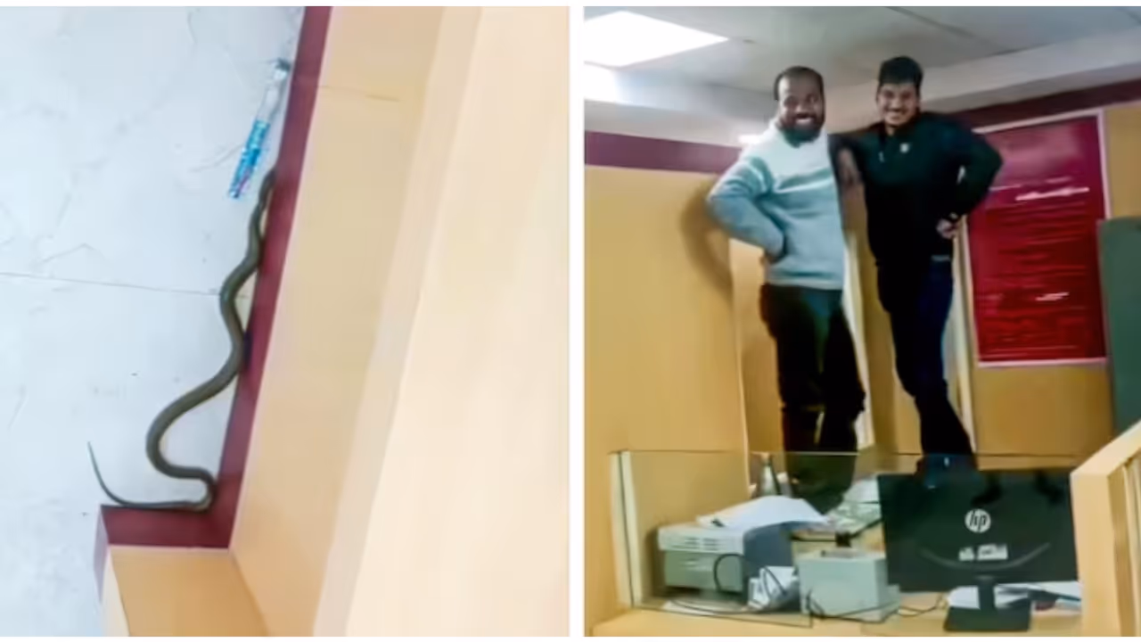 ബാങ്കിനുള്ളിലേക്ക് പാമ്പ് ഇഴഞ്ഞ് കയറുകയായിരുന്നു. ജീവനക്കാർ കസേരകളിലും കൗണ്ടറുകളിലും ഡെസ്കുകൾക്ക് മുകളിലും കയറുന്നതും മുറിയുടെ വിവിധ കോണുകളിലേക്ക് ഓടുന്നതുമായ വീഡിയോ സമൂഹ മാധ്യമങ്ങളിൽ വൈറലാണ്.