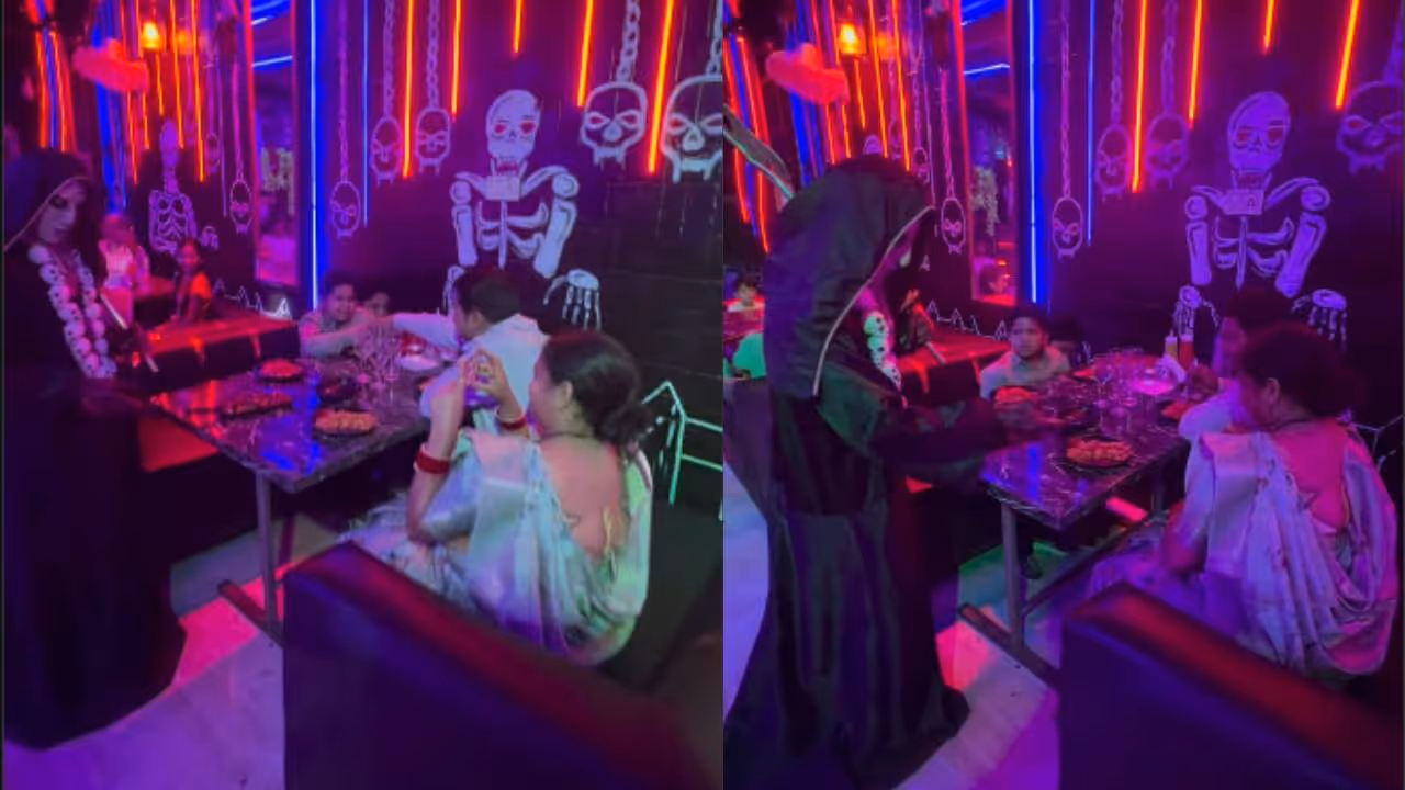 വാരണാസിയിലെ ചേത്ഗഞ്ച് പ്രദേശത്തുള്ള 'കങ്കാൾ ഹൊറർ റെസ്റ്റോറന്റി'ലാണ് സംഭവം നടന്നത്. പ്രേതങ്ങളുടെയും അസ്ഥികൂടങ്ങളുടെയും വേഷം ധരിച്ചെത്തുന്ന ജീവനക്കാർ കസ്റ്റമേഴ്സിനെ ഭയപ്പെടുത്തും. അതാണ് ഇവിടുത്തെ രീതി. റെസ്റ്റോറന്റ് അധികൃതർ തന്നെ ഇൻസ്റ്റാഗ്രാമിൽ പങ്കുവെച്ച വീഡിയോയിൽ, പ്രേതത്തിന്റെ വേഷം കെട്ടിയ ഒരാൾ അടുത്തേക്ക് വരുമ്പോൾ ഒരു ചെറിയ കുട്ടി ഭയന്നുവിറയ്ക്കുന്നത് കാണാം. കുട്ടി കരഞ്ഞുകൊണ്ട് 'പ്ലീസ് പാപ്പാ നഹി' (വേണ്ട അച്ഛാ) എന്ന് പറയുന്നുണ്ട്. എന്നാൽ, പ്രേതത്തിന്റെ വേഷം കെട്ടിയ ആൾ പിന്തിരിയുന്നില്ല. മാതാപിതാക്കളും ജീവനക്കാരോട് മതി എന്ന് പറയുന്നില്ല. കുട്ടി ആകെ ഭയന്നിരിക്കുകയാണ് എന്നും വീഡിയോയിൽ കാണാം.